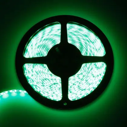 The LED Strip 5M 24W Green are high efficient, low voltage strips that provide an excellent Green light. This colour is great for creating a festive touch or party atmosphere.