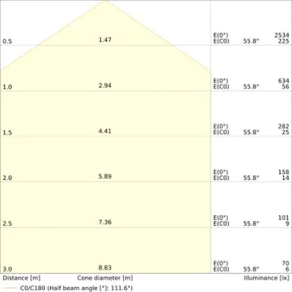 The colour code is a combination of colour rendering (CRI) and light colour (Kelvin). The first number indicates the colour rendering (1 = very poor colour rendering, 9 = maximum colour fastness). The second and third number contains the light colour. Example: the colour code 830 consists of good colour rendering (8) and warm white light (3000K). |