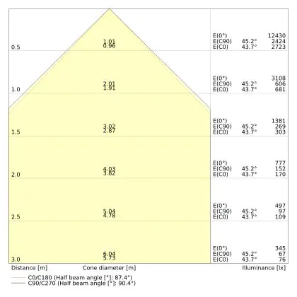 The colour code is a combination of colour rendering (CRI) and light colour (Kelvin). The first number indicates the colour rendering (1 = very poor colour rendering, 9 = maximum colour fastness). The second and third number contains the light colour. Example: the colour code 830 consists of good colour rendering (8) and warm white light (3000K). |