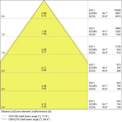 The colour code is a combination of colour rendering (CRI) and light colour (Kelvin). The first number indicates the colour rendering (1 = very poor colour rendering, 9 = maximum colour fastness). The second and third number contains the light colour. Example: the colour code 830 consists of good colour rendering (8) and warm white light (3000K). |