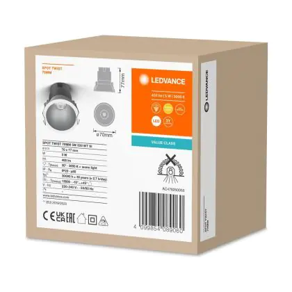 | Manufacturer Name | LED SPOT RECESS TWIST PRO 70mm 5W 3000K White Silver | |