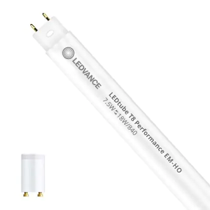 Ledvance LED Tube T8 Performance (EM/Mains) High Output 7.5W 1100lm - 840 Cool White | 60cm - Dimmable - Replaces 18W