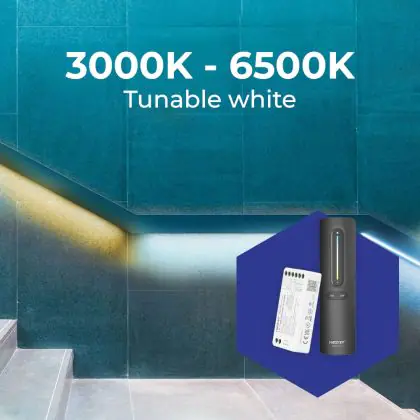 3. Tunable white: The white light can take any values in the listed Kelvin scale, for instance 2200K up to 6500K.