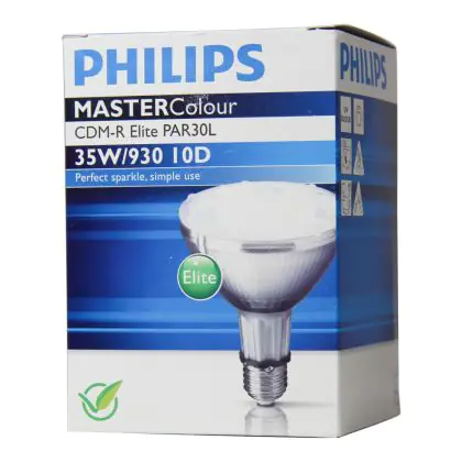 Philips CDM-R Elite 35W 930 E27 PAR30L 10D have a warm light of a color temperature of 3000K. The color rendering index is also excellent, more than 90-100Ra.