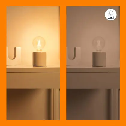 4. Dim to warm: Dimming makes the light warmer (more yellow). The more you dim, the warmer the colour.